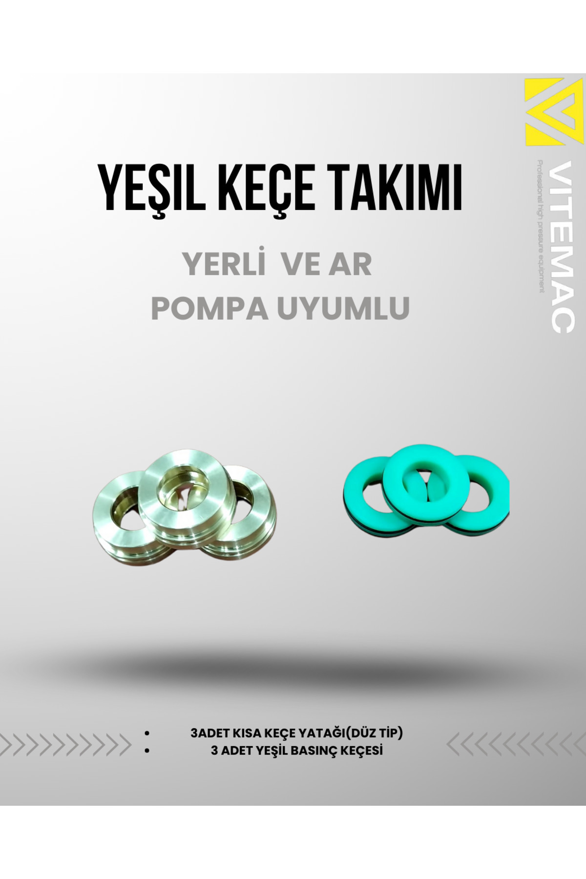 Vitemac yeşil keçe takımı 3 adet yeşil keçe ve 3 adet kısa keçe yatağından oluşmaktadır